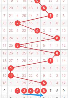 上图是体彩七星彩从左到右定位第一位数字走势图,我标注出来的数字23456这个区域最近几期开出号码不多,本期第一位数字关注这几个数字23456,个人最看好数字2345。
