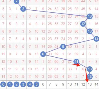 上图是体彩七星彩蓝球开奖号码走势分布图,我标注出来的红色小箭头表示最近的跨度,最近两期开出的跨度都是小跨度,那么本期就可以关注出大跨度号码的数字,那么就是数字0 1 2 3 4 5。