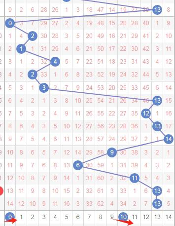 上图是体彩七星彩蓝球开奖号码走势分布图,我标注出来的数字都是0尾数数字0 10,到本期为止0尾数数字连续遗漏了14期,那么本期或者近期这两个数字还是可以值得考虑的。