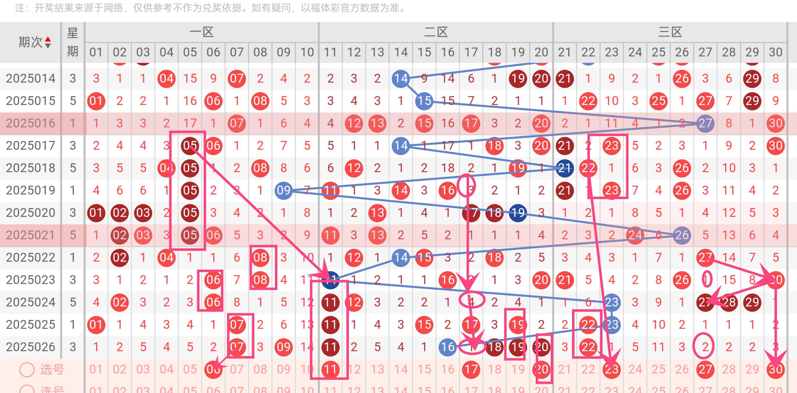- 21-30区间:23(热号)、27(热号)、30(高频尾号)延续尾段优势。