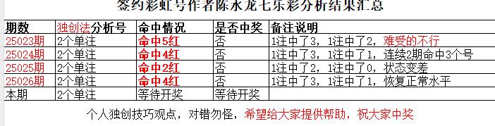 大家好我是彩虹号得签约作者陈水龙,首先咱们看我做的表格,表格内容为往期分析结果汇总(有期数限制)与本期分析说明,方便大家一目了然的认识我。