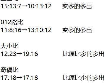 列出近10期每5期的012路、三区比、大小比、奇偶比