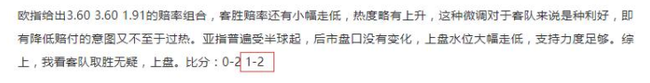 欧指给出2.20 3.30 3.20的赔率组合,初赔主胜更是定义在2.20的位置,这就很有意思了,以米竞技本赛季的主场成绩加上交锋,绝对不会缺少热度,如此情况下还有这么高的主胜赔率位置,显然是不怕赔付了,后市胜赔小幅走低并抬高负赔,更是在往主队身上诱导。亚指普遍平半起,在忘记交锋通常都是半球盘的情况下,这个盘口明显低看主队。综上,我看圣保罗全身而退,竞彩让1球负,下盘。比分:1-1 2-2 1-2