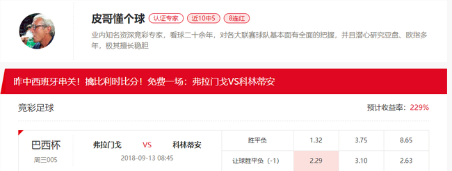 最近皮哥状态不太好,不过熟悉皮哥的老铁们应该知道,皮哥的调整和反弹能力是不错的,经过反复的复盘和钻研,今天已经送出4场推荐,为了补偿老铁们之前的损失,今天皮哥再给出一场免费推荐!信心指数十颗星。