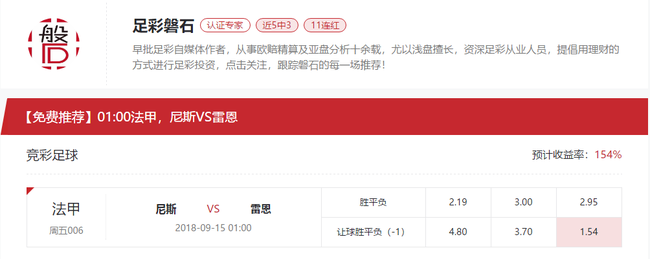 3、往绩交锋近10次,尼斯4胜4平2负占据上风,交锋不怵对手;本场比赛各机构初盘开出主让平半高水的初盘,受注后上盘涨至超高水,部分公司甚至退盘平手盘主队中水受注,在尼斯刚刚赢球止颓,交锋占优的情况下,盘口走势不利于主场作战的尼斯赢球,看好客场作战的雷恩不败!