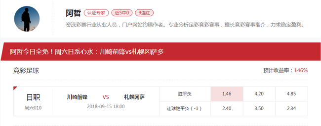 欧指给出1.62 4.20 5.00的赔率组合,这个位置对主队的支持力度还是不错的,本场各个机构的分歧不小,可见客队热度也不少,但此种情况下竞彩给出超高的平赔和客胜赔,显然是不怕赔付的表现。亚指普遍半一或一球起,后市少部分机构有退盘举动,不过目前普遍处于半一低水或中低水,这个位置依然表现出对主队的力挺。综上,我看川崎主场取胜,上盘。比分:2-1 3-1