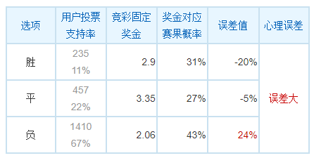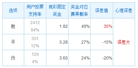 亚洲主流公司普遍以客让平半中高水起步,初参符合双方实力对比,受注后变化不大。欧赔方面平赔普遍开在3.30附近,而胜赔则处于3.20附近与平赔几乎相当,在客队近期大勇的情况下反而对主队有所堤防;负赔则顶高到2.20附近,赔付压力较大。竞彩方面截稿前开出胜平负玩法奖金2.9、3.35、2.06,客胜概率43%,购彩者支持率67%,存在24%的较大误差。同奖回查显示共8场比赛符合相同SP值组合条件,结果胜2场(25%)、平3场(37.5%)、负3场(37.5%)。