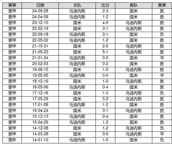 国米 VS 乌迪内斯两队近10年的交战次数为23场,国米16胜3平4负,赢球概率为69.6%,平局概率为13.0%,输球概率为17.4%。