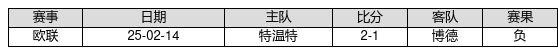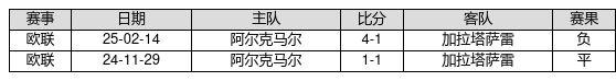 加拉塔萨雷 VS 阿尔克马尔两队近10年的交战次数为2场,加拉塔萨雷0胜1平1负,赢球概率为0.0%,平局概率为50.0%,输球概率为50.0%。