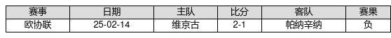 帕纳辛纳 VS 维京古两队近10年的交战次数为1场,帕纳辛纳0胜0平1负,赢球概率为0.0%,平局概率为0.0%,输球概率为100.0%。