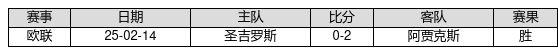 阿贾克斯 VS 圣吉罗斯两队近10年的交战次数为1场,阿贾克斯1胜0平0负,赢球概率为100.0%,平局概率为0.0%,输球概率为0.0%。