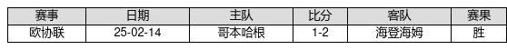 海登海姆 VS 哥本哈根两队近10年的交战次数为1场,海登海姆1胜0平0负,赢球概率为100.0%,平局概率为0.0%,输球概率为0.0%。