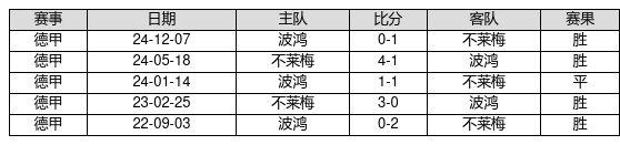 不莱梅 VS 波鸿两队近10年的交战次数为5场,不莱梅4胜1平0负,赢球概率为80.0%,平局概率为20.0%,输球概率为0.0%。
