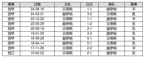 赫罗纳 VS 贝蒂斯两队近10年的交战次数为10场,赫罗纳1胜3平6负,赢球概率为10.0%,平局概率为30.0%,输球概率为60.0%。