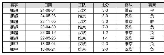 汉坎 VS 维京两队近10年的交战次数为8场,汉坎1胜2平5负,赢球概率为12.5%,平局概率为25.0%,输球概率为62.5%。