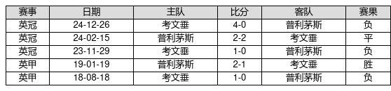 普利茅斯 VS 考文垂两队近10年的交战次数为5场,普利茅斯1胜1平3负,赢球概率为20.0%,平局概率为20.0%,输球概率为60.0%。