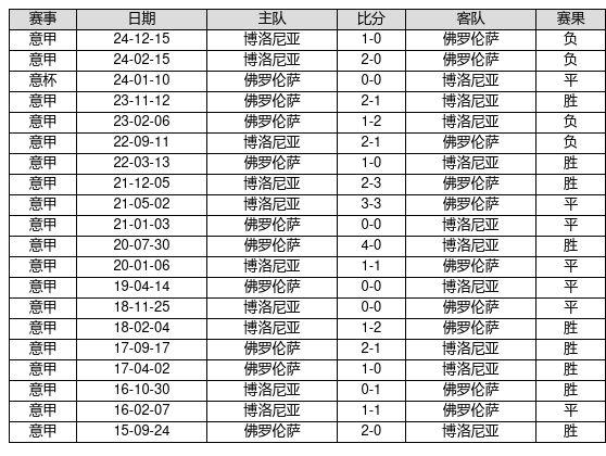 佛罗伦萨 VS 博洛尼亚两队近10年的交战次数为20场,佛罗伦萨9胜7平4负,赢球概率为45.0%,平局概率为35.0%,输球概率为20.0%。