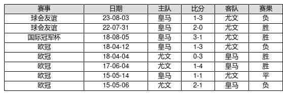 皇马 VS 尤文两队近10年的交战次数为8场,皇马4胜1平3负,赢球概率为50.0%,平局概率为12.5%,输球概率为37.5%。