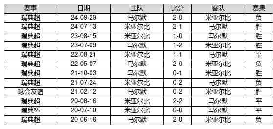 米亚尔比 VS 马尔默两队近10年的交战次数为12场,米亚尔比5胜3平4负,赢球概率为41.7%,平局概率为25.0%,输球概率为33.3%。