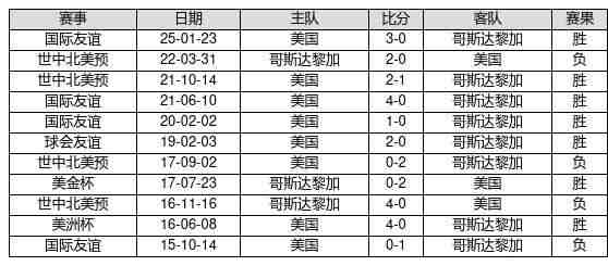 美国 VS 哥斯达黎加两队近10年的交战次数为11场,美国7胜0平4负,赢球概率为63.6%,平局概率为0.0%,输球概率为36.4%。