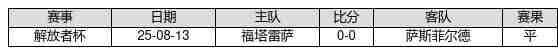 萨斯菲尔德 VS 福塔雷萨两队近10年的交战次数为1场,萨斯菲尔德0胜1平0负,赢球概率为0.0%,平局概率为100.0%,输球概率为0.0%。