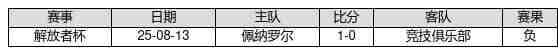 竞技俱乐部 VS 佩纳罗尔两队近10年的交战次数为1场,竞技俱乐部0胜0平1负,赢球概率为0.0%,平局概率为0.0%,输球概率为100.0%。