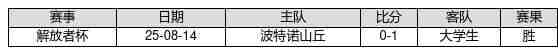 大学生 VS 波特诺山丘两队近10年的交战次数为1场,大学生1胜0平0负,赢球概率为100.0%,平局概率为0.0%,输球概率为0.0%。