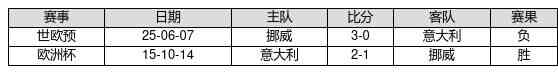 意大利 VS 挪威两队近10年的交战次数为2场,意大利1胜0平1负,赢球概率为50.0%,平局概率为0.0%,输球概率为50.0%。