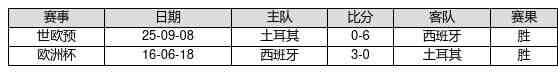 西班牙 VS 土耳其两队近10年的交战次数为2场,西班牙2胜0平0负,赢球概率为100.0%,平局概率为0.0%,输球概率为0.0%。