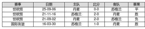 苏格兰 VS 丹麦两队近10年的交战次数为4场,苏格兰2胜1平1负,赢球概率为50.0%,平局概率为25.0%,输球概率为25.0%。