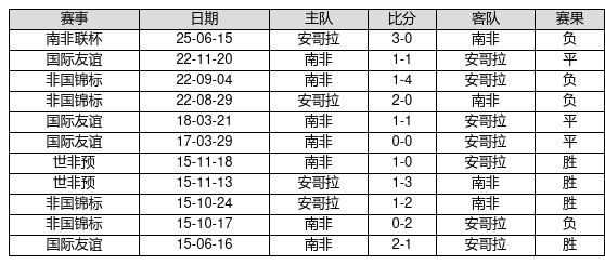 南非 VS 安哥拉两队近10年的交战次数为11场,南非4胜3平4负,赢球概率为36.4%,平局概率为27.3%,输球概率为36.4%。