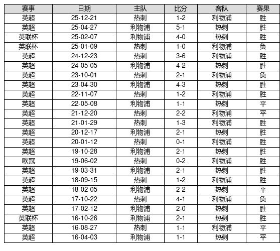 利物浦 VS 热刺两队近10年的交战次数为24场,利物浦16胜5平3负,赢球概率为66.7%,平局概率为20.8%,输球概率为12.5%。