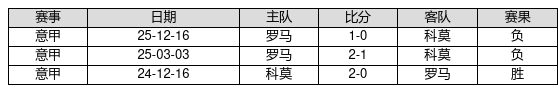 科莫 VS 罗马两队近10年的交战次数为3场,科莫1胜0平2负,赢球概率为33.3%,平局概率为0.0%,输球概率为66.7%。