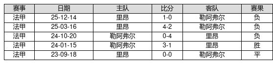勒阿弗尔 VS 里昂两队近10年的交战次数为5场,勒阿弗尔1胜1平3负,赢球概率为20.0%,平局概率为20.0%,输球概率为60.0%。