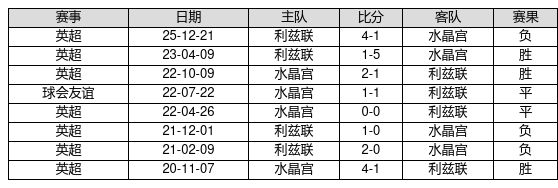 水晶宫 VS 利兹联两队近10年的交战次数为8场,水晶宫3胜2平3负,赢球概率为37.5%,平局概率为25.0%,输球概率为37.5%。