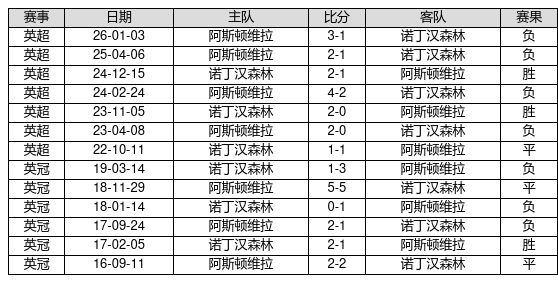 诺丁汉森林 VS 阿斯顿维拉两队近10年的交战次数为13场,诺丁汉森林3胜3平7负,赢球概率为23.1%,平局概率为23.1%,输球概率为53.8%。
