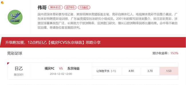 [新浪球通]伟哥竞彩推荐:横滨FCvs东京绿茵