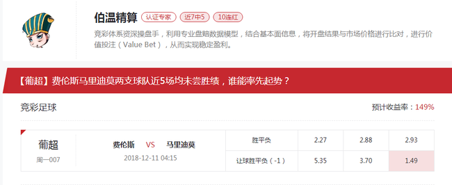 伯温精算竞彩推荐:费伦斯vs马里迪莫