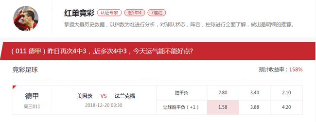 竞彩推介:主受让胜(客让一球) 数据倾向:美因茨(+0/0.5)