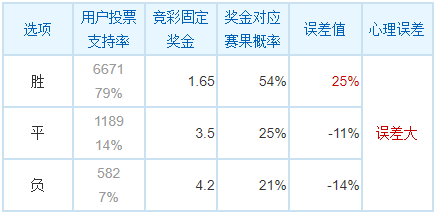 12月15日误差排行所选比赛打出1场低热冷门,周六015霍芬海姆0-0门兴格拉德巴赫,打出截稿前平局奖金3.90,对应误差1%;而周六045巴利亚多利德2-3马德里竞技,打出截稿前主负奖金1.63,对应误差24%。今天是12月22日,竞彩足球开售赛事89场,其中胜平负单固1场。