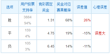 分析:埃因霍温上轮客场4-0大胜赫拉克勒斯,自客场败给费耶诺德后联赛取得两连胜,16轮过后15胜1负积45分高居榜首,主场8战全胜,主场得失球比是可怕的32比1,主场优势巨大。阿尔克马尔上轮主场2-1击败SBV精英取得连胜,目前积25分排在第5,近3个客场2胜1平保持不败。往绩方面,两队近9次交手埃因霍温全胜。截稿前竞彩足球开出胜平负游戏奖金1.31、4.75、6.45,主胜概率68%,购彩者支持率94%,存在26%的较大误差。