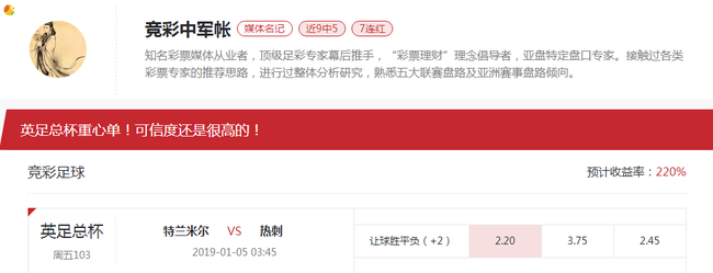 热刺本赛季可谓杀气十足,球队被昨晚战胜利物浦的曼城反超,落到第三位。热刺近期球队赛事密集,下周中还有与切尔西的联赛杯半决赛,本场比赛球队肯定会排出轮换阵容出战。戴尔、万亚马、扬森因伤缺阵,登贝莱、拉梅拉、奥利耶出战成疑。但是热刺有着全英超最高的客场胜率,可信度不错。