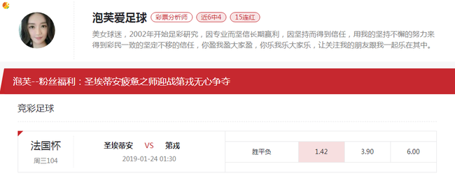 [新浪球通]泡芙爱足球竞彩推荐:圣埃蒂安vs第戎