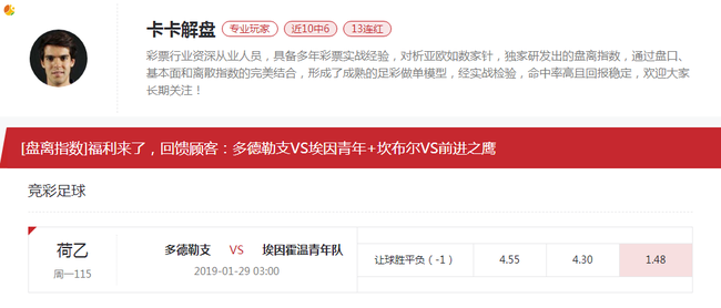 周一115多德勒支 VS 埃因青年:主-1负(1.48)