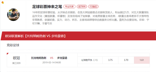 主队:热刺是英超联赛传统豪门,球队本赛季在英超联赛取得19胜0平6负积分57分暂列联赛第三位,球队快意恩仇联赛非胜即负,最近热刺主场3连胜,目前状态已经稳定。
