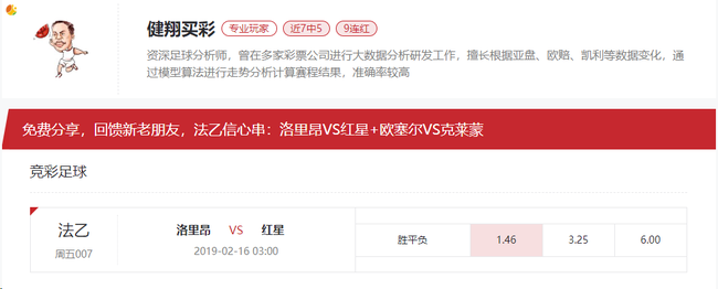 周五007 法乙 洛里昂VS红星,主胜(1.46)