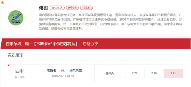 主队韦斯卡,目前积分18分,排名第20名,上一场西甲客场0:2胜赫罗纳,近期3胜1平2负,近期状态不错,战绩稳定,客队毕尔巴鄂竞技,目前积分27分,排名第14名,上一场西甲主场0:0平巴萨,近期2胜3平1负,近期状态不错,战绩稳定,综合来看,两队状态接近,本场比赛胜平负位置均有一定的关注。