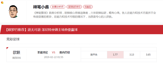 本场比赛,各公司开出泽尼特让0/0.5球超低水的初始指数,即时指数(截至13时)纷纷升至泽尼特让0.5球中水。此前费内巴切在主场面对泽尼特,初指开平手中水,终指变为费内巴切让0.5球高水,最终1:0赢球。那么泽尼特回到主场,应是能拿到一个0.5球高水的让球力度,本场初指是偏浅的。由于泽尼特首回合失利,市场形象有所回落,而费内巴切如今联赛保级压力较大,战意存疑,如今拔高主队门槛,进一步提升信心,更像正路操作,因此本场推荐:泽尼特胜。