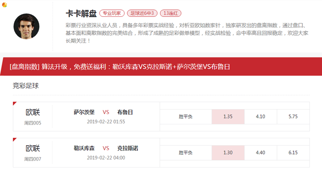 本场比赛当前盘离指数为4.75、18.98、18.53。根据盘离指数大数据模型分析,该盘离指数指向主胜。