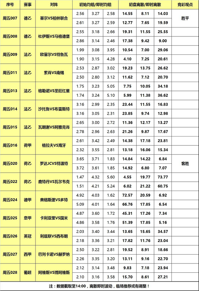 周五足坛赛事丰富,下午日职和韩职4场周五早场,晚间欧洲联赛如期进行,周五依旧主打法系和荷系赛事,两大赛场贡献多达15场!